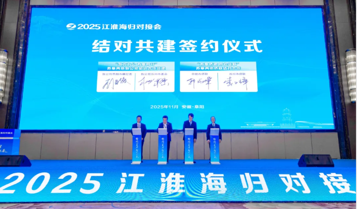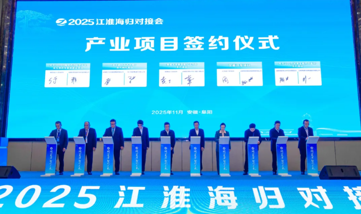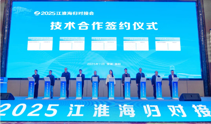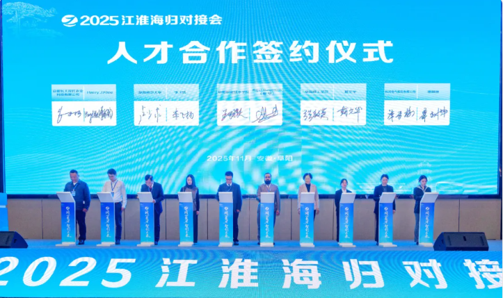 2025年11月10日,2025江淮海归对接会在阜阳成功举行。本次对接会由致公党中央留学人员委员会指导,致公党安徽省委会、安徽省归国华侨联合会、安徽省欧美同学会共同主办,安徽创新人力资源研究院作为协办单位全程参与。活动以“汇聚侨海智力,赋能安徽发展”为核心,推动技术类、人才类、产业类及结对共建类等52个项目现场签约,为安徽“三地一区”建设注入侨海人才新动能。
